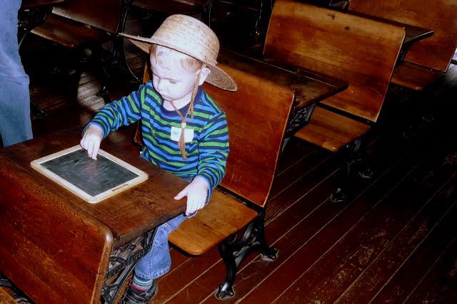 Carillon Park with my mom as a child. It is set up as a little village of buildings important to the history of the Dayton area and includes part of the National Park site with the Wright Flyer III in one of it's buildings. Will especially enjoyed the school house....